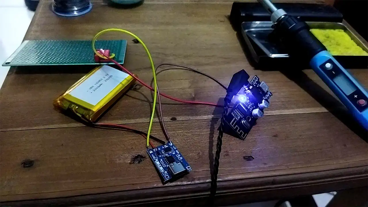 I designed this device with portability in mind while retain universal and functional aspect however as we later learn, we found roadblock for two-way communication (we could only use receive). I use 2.000 mAh Li-ion battery to power the device, and connect it with Li-ion battery charger module so I could charge it. Our module selection use 3.5mm port which makes it more lenient whether I want to connect it into speaker or to drive an IEM/headphone.